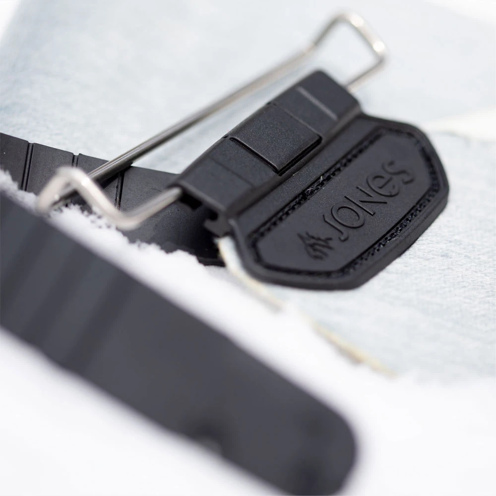 Die Jones Splitboard-Steigfelle sind in drei verschiedenen Längen erhältlich und können individuell zugeschnitten werden. Die Quick Tension Tail Clips sind im Lieferumfang enthalten.