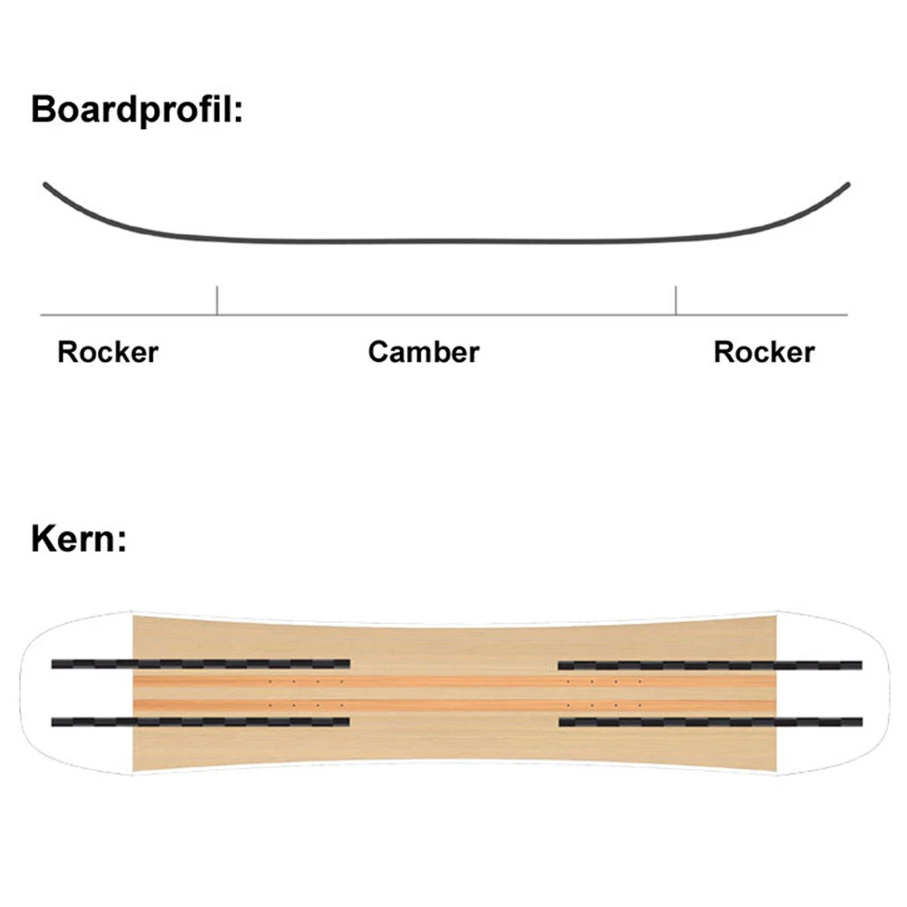 Mit Frau Holle macht das Snowboarden einfach nur Spaß! Egal ob auf der Piste, im Park oder Backcountry, das Board holt das Beste aus dir heraus und fühlt sich auf dem kompletten Berg zuhause. Die traditionelle Vorspannung in der Boardmitte bringt verlässlichen Kantenhalt und Laufruhe, während die Rocker-Tips für ein spielerisches Fahrgefühl und mühelosen Auftrieb im Tiefschnee sorgen. Optisches Highlight ist das handgefärbte Ahornfurnier mit goldenem Ornament-Linework welches wie Seide in der Sonne schimmert. Die weißen ABS Sidewalls und die gleichfarbige Base mit dem SASA Schriftzug im passenden Coral-Farbton runden das Gesamtdesign ab. Im Herzen trägt Frau Holle einen Holzkern aus Pappel und Buche, welcher mit Glasfaser und vier Carbonstreifen verstärkt ist und somit für Sprungkraft und Reaktionsvermögen sorgt. Diese Konstruktion ermöglicht dem Brett eine verlässliche Kraftübertragung und einen langlebigen Flex.