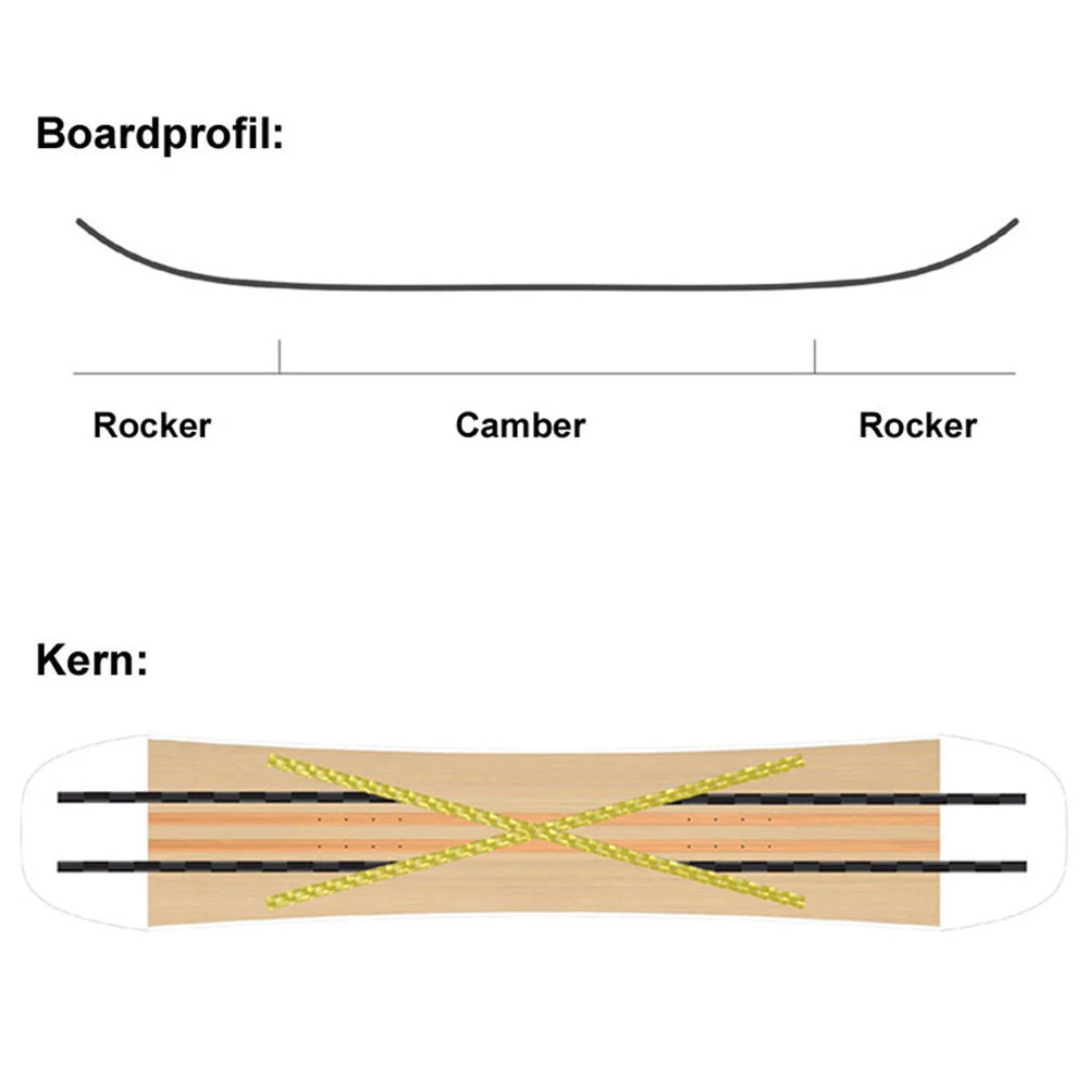 - Camberprofil: Twin Hybrid Camber – Vorspanung Boardmitte/Rocker Tips